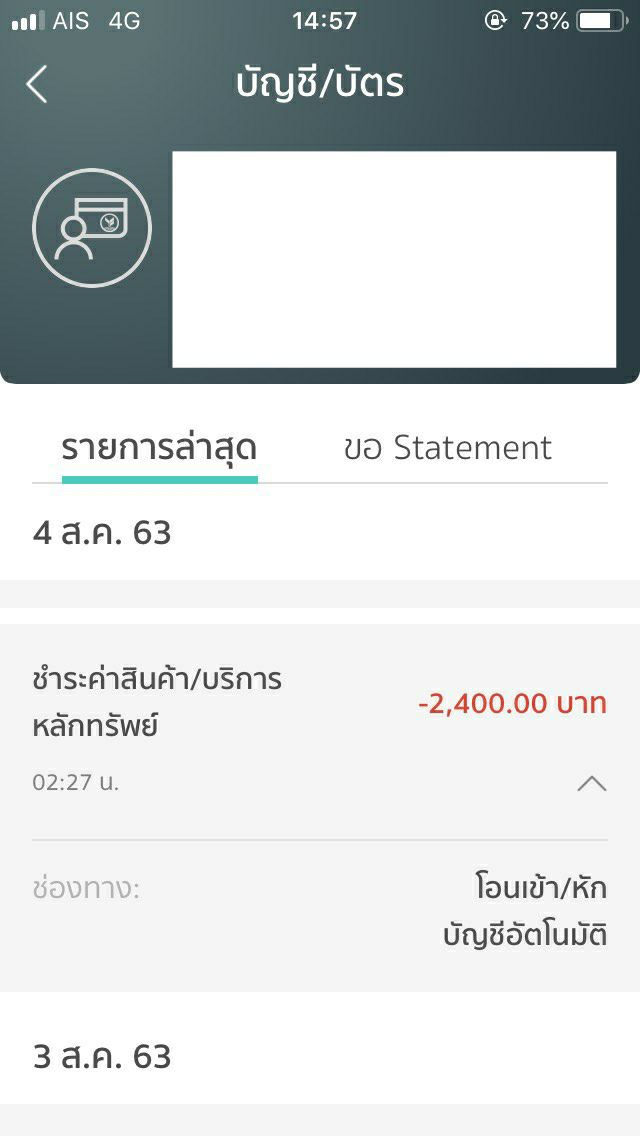 พนักงานก็ตรวจสอบไม่ได้ว่าโอนไปที่ไหน รู้แค่เป็น การชำระค่าบริการ/บริการ หลักทรัพย์