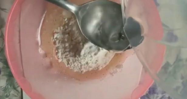ใส่น้ำเย็นจัดลงมาผสมกับแป้ง