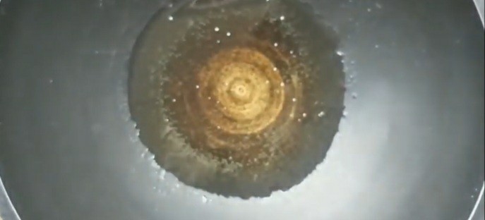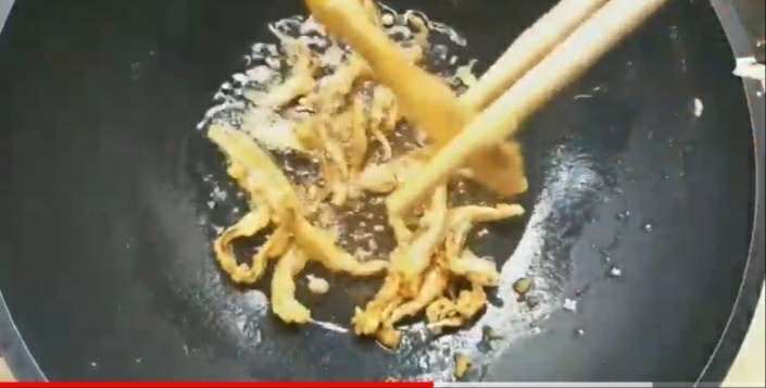 น้ำมันร้อนนำหัวเกสรหัวปลีชุบแป้งทอดกรอบ นำลงมาทอด