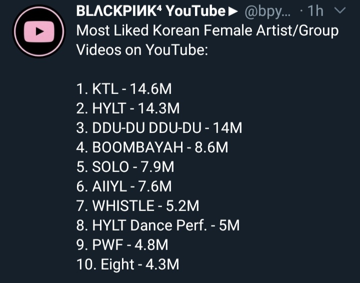 10อันดับ Video ศิลปินหญิงเกาหลีที่มีผู้กดLikeมากที่สุดบนYoutube
