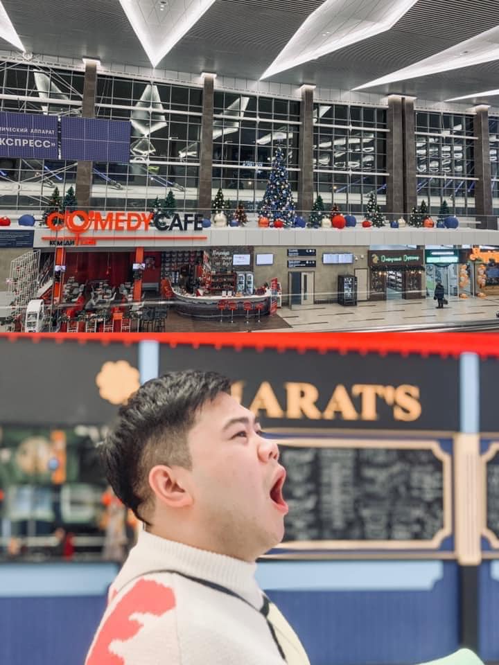 *ในรูปนี้คือถ่ายช่วงเปลี่ยนเครื่อง ที่สนามบิน ครัชโนยาสต์ ที่รัสเซีย อุณหูมิข้างนอกคือ -35 องศา ช่องฟรีซไปทางไหนค่ะ ทั้งทริปทุกคนจะเห็นแค่ไอต้าวหัวกลมๆนี้คือแฟนเราเองค่ะ