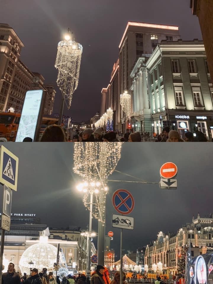 จากสถานี Vodniy geen line สามารถนั่งตรงมาลงที่สถานี Teatralnaya ได้เลยใช้เวลาประมาณ 15 นาที เดินออกจากสถานีจะเจอจัตุรัสแดงเลยค่ะ ตอนเดินออกมาคือแบบโอ้โหเลยค่ะ คุ้มแล้วที่นั่งเครื่องมากว่า 15 ชั่วโมง ท้องถนนตกแต่งด้วยไฟคริสมาสต์สุดอลังการ มองไปทางนั้นก็สวยทางนี้ก็สวย และด้วยบรรยากาศเย็นๆคือโอ้ยดีงามไม่หยุด สวยจริงมาเถอะทุกคน มาคริสมาสต์หนาวๆหูตั้งนี้แหละ สวยมากจริงๆ อยากให้มาช่วงนี้ของปี