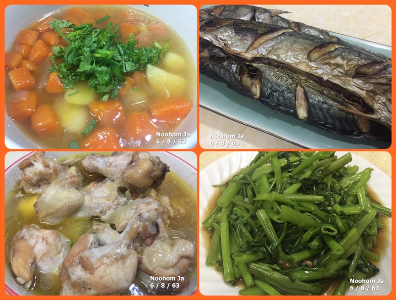 วันพฤหัสบดีที่ 6 สิงหาคม 2563 รายการอาหารเช้านี้ ซุปแครอท..ซาบะย่าง..ปีกไก่ต้ม..ผัดผักบุ้ง..ไข่เจียว ราคาพืชผักเนื้อสัตว์ไก่หมู พากันขึ้นราคากระหน่ำซ้ำเติมพร้อมกับภัยธรรมชาติพายุฝนตกน้ำท่วมดินสไลด์บ้านชุบโคลนรถแช่น้ำ แต่อย่างไรก็ขอส่งกำลังใจให้เพื่อนพ้นภัยโดยเร็ว