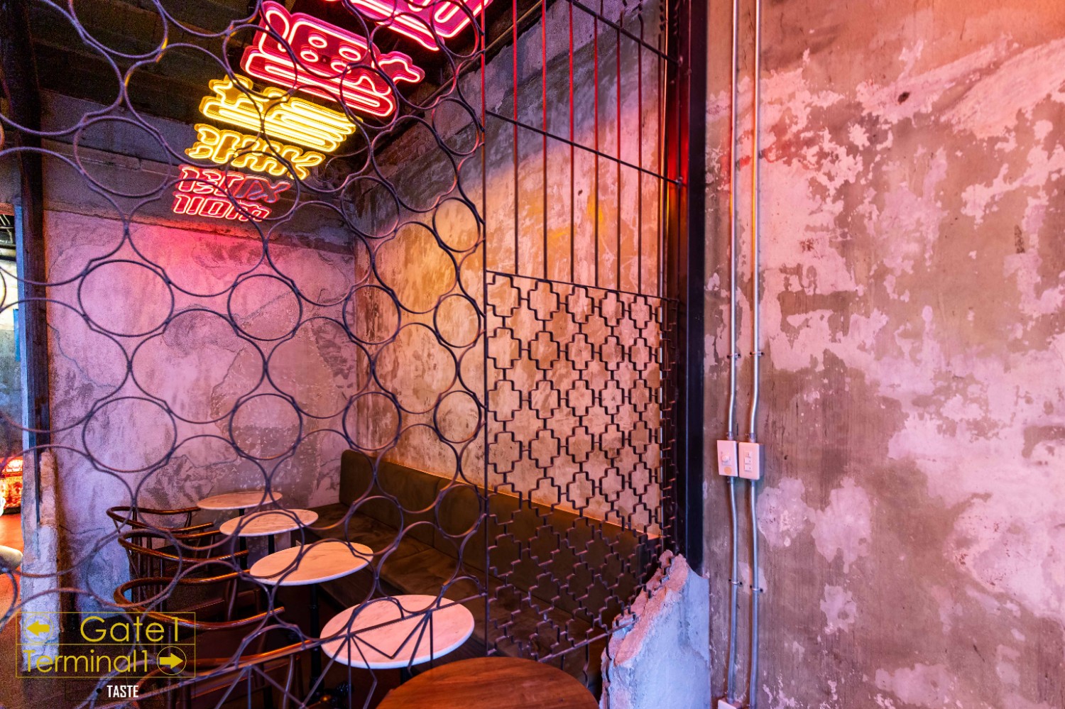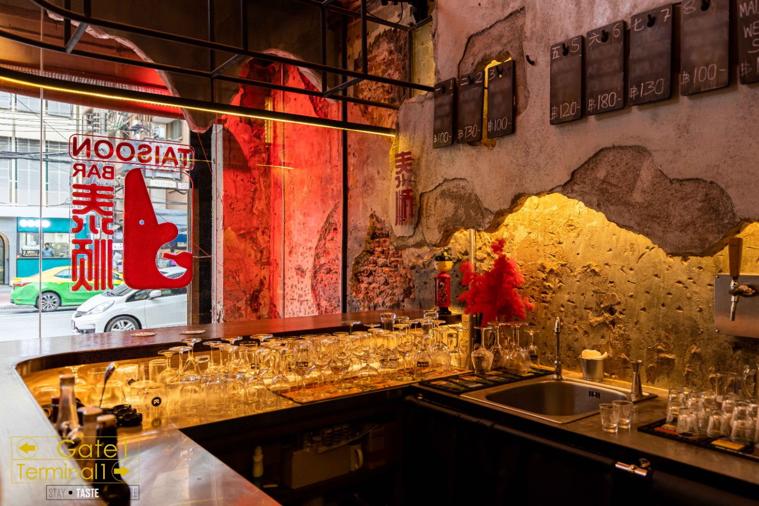 ไท้ ซุ่น บาร์ ไม่ใช่ร้านลับอย่างแน่นอน ตรงกันข้ามกลับใช้ไฟสีแดงทำให้ตอนกลางคืนร้านนี้เด่นขึ้นมาทันที หลายส่วนของที่นี่พยายามใช้ของเก่าที่มีมาก่อนแล้ว เช่น กำแพงปูนก็นำมาประดับตกแต่งส่วนต่างๆของร้าน หรือเคาท์เตอร์บาร์ที่เป็นตู้ยา กำแพงตรงบาร์ที่เป็นที่ติดรายการเครื่องดื่มก็เป็นของเก่าจากตึกนี้เหมือนกัน แหงนขึ้นไปมองเพดานจะเห็นโคมไฟสีแดงเสริมความเป็นจีน แล้วก็เห็นลวดลายดั้งเดิมของเพดานด้วย