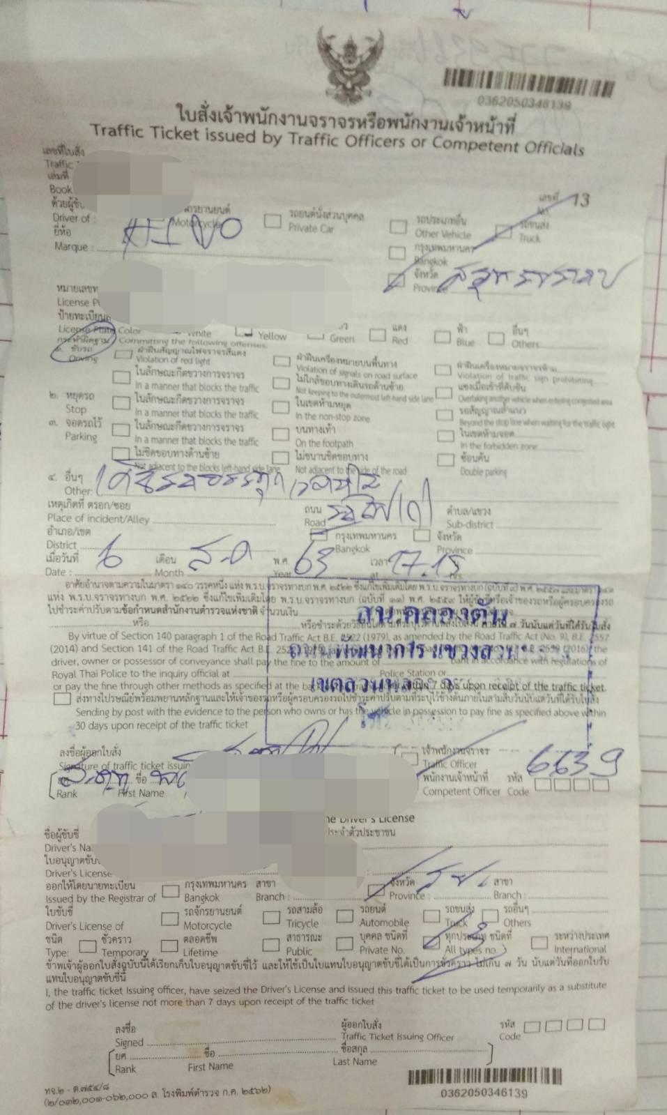 7. ผมว่า การเขียนใบสั่ง สมัยนี้ ใบสั่งควรจะมี จำนวนเงินที่ต้องจ่ายค่าปรับ และ QR Code ที่สามารถจ่ายทางออนไลน์ได้