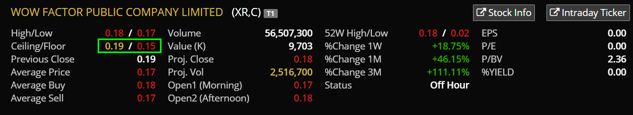เช่น หุ้น XX วันนี้ ราคาเปิด 2.60 ต่ำสุดอยู่ที่ 2.40 สูงสุด 2.70 และ ราคาปิดอยู่ที่ 2.50 จะคำนวณราคา Ceiling / ราคา Floor ของวันพรุ่งนี้ ได้อย่างไร
