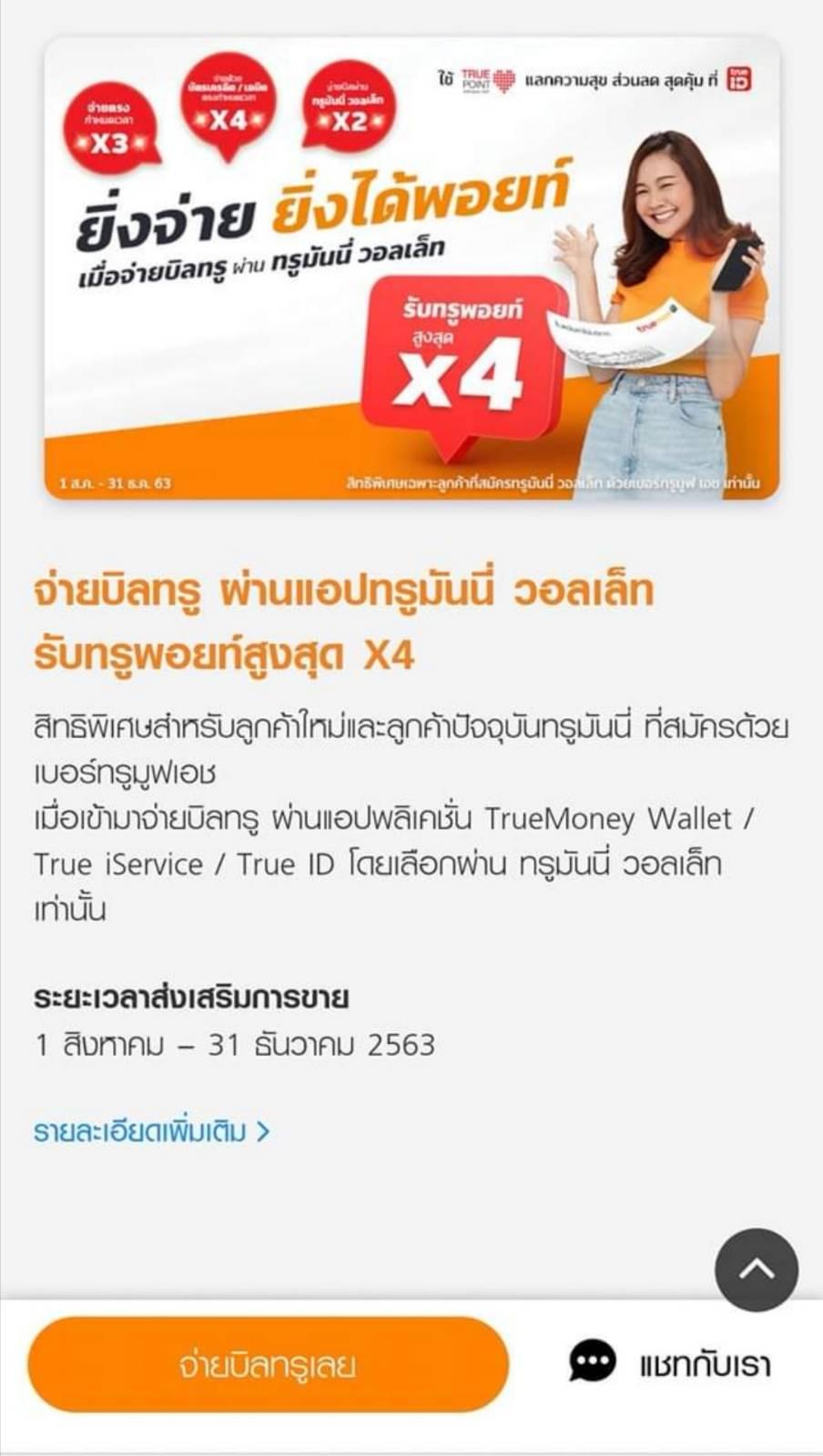 จ่ายบิลผ่าน TMY Wallet บน App iService อยากได้ทรูพอยท์X 4 ต้องจ่ายแบบไหน...