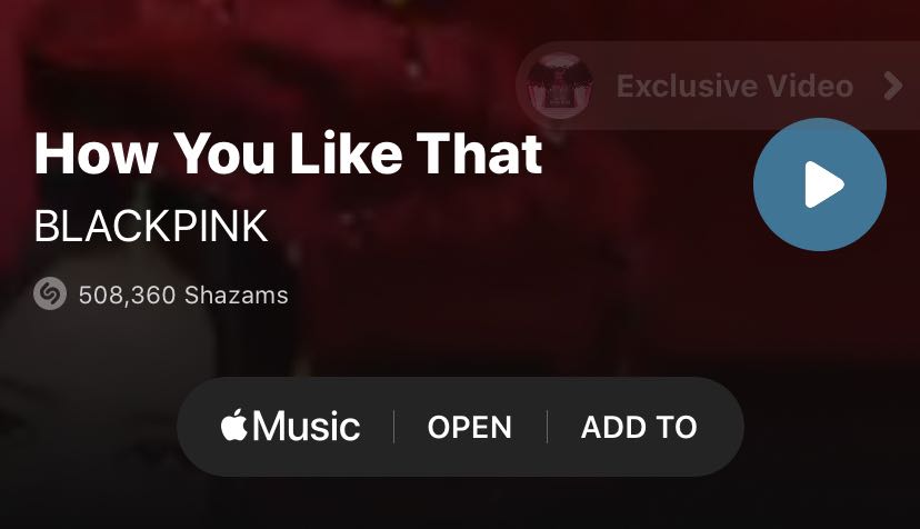 “How You Like That” by @BLACKPINK becomes the most shazamed KPop song of 2020 with over 502,000 Shazams.