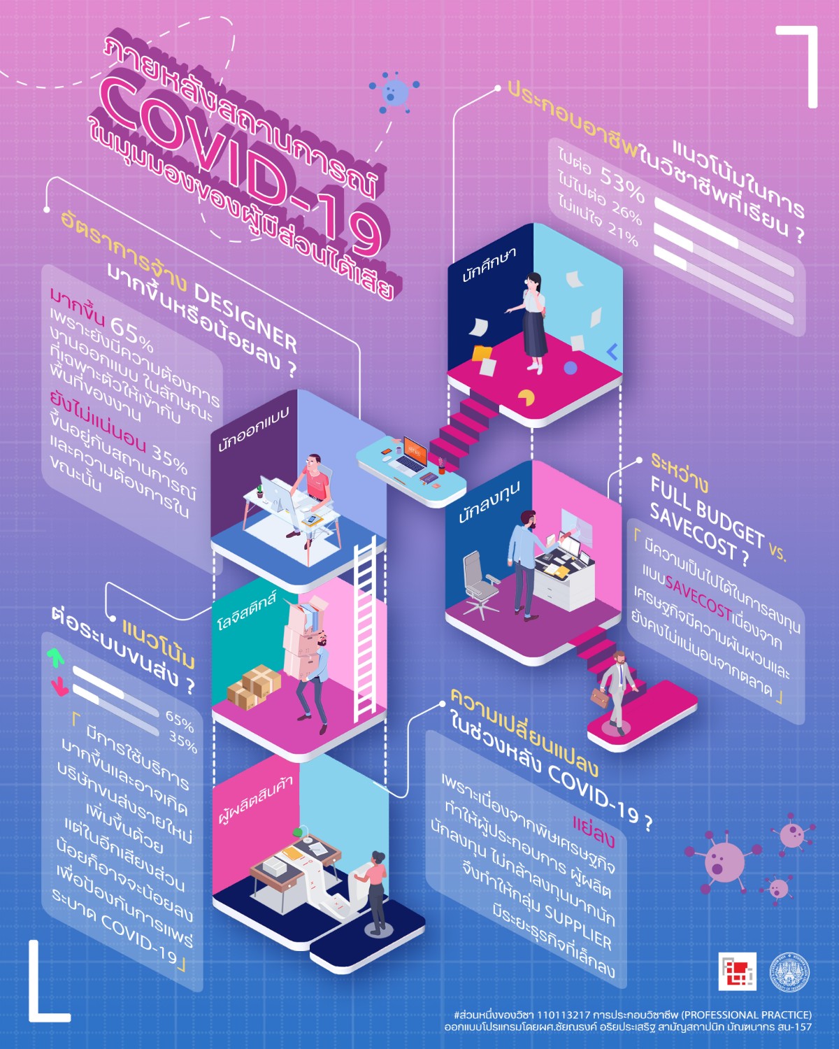 เราจึงได้ทำแบบสำรวจและสัมภาษณ์จากผู้ที่มีส่วนได้เสียในสายงานนี้ ไม่ว่าจะเป็น นักศึกษา นักออกแบบ/เจ้าของธุรกิจ นักลงทุนอสังหา Supplier โลจิสติกส์ ฯลฯ ซึ่งได้รับผลกระทบจากสถานการณ์ในปัจจุบัน ได้ร่วมออกความคิดเห็นในมุมมองของอาชีพต่างๆ