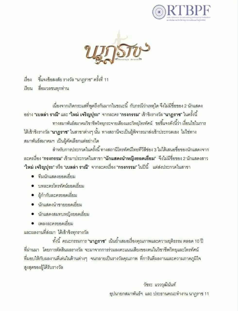 ว้าย!! นาฏราช แจงแล้ว ช่อง3 ไม่ส่ง “ใหม่-เบลล่า” เข้าชิงเอง