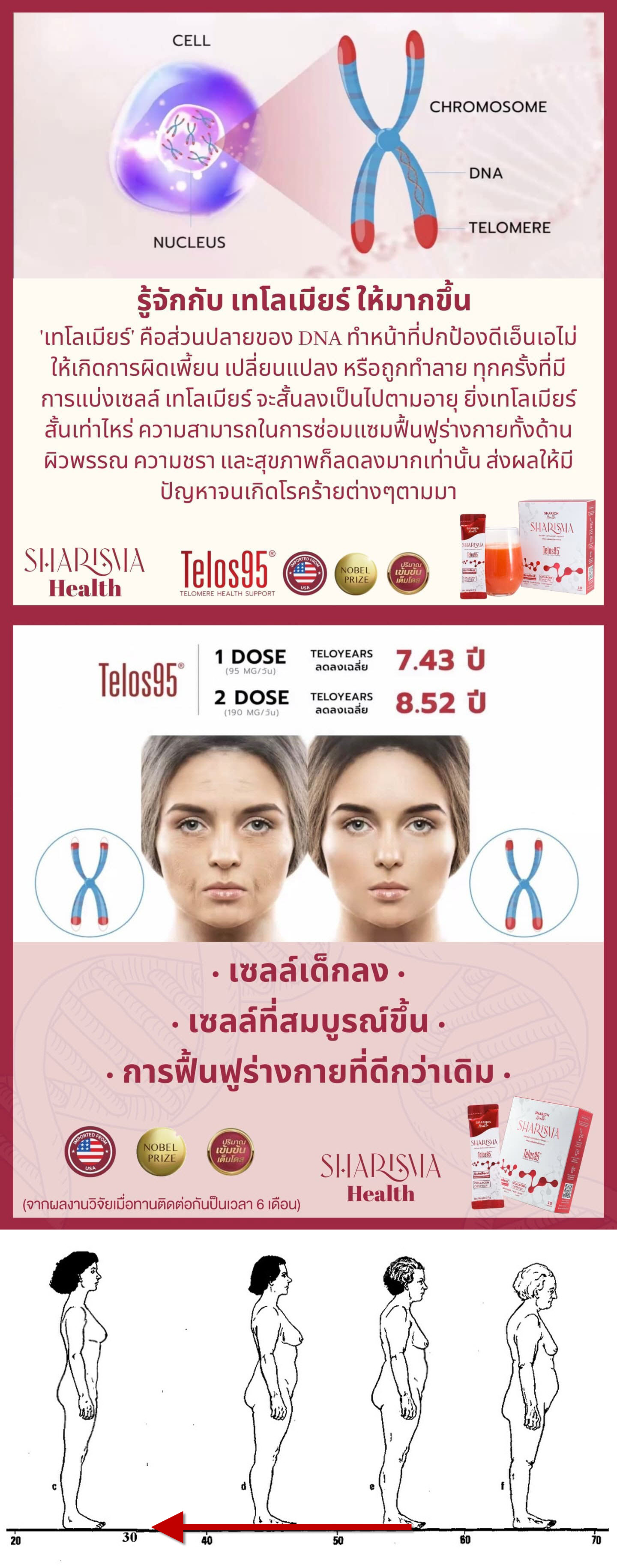 Sharisma Super Supplement นวัตกรรมการชะลอวัยระดับเซลล์ ใช้ Telos95 สิทธิบัตรจาก USA ในการย้อนอายุของเทโลเมียร์ Sharisma (ชาริสม่า) เจ้าแรกที่เป็น Super Supplement