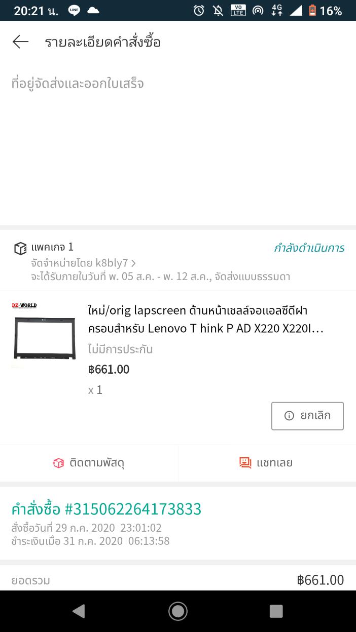 เรื่องของเรื่องนั้น คือ ผมต้องการอะไหล่โน๊ตบุ๊คเอาไปซ่อม โดยเฉพาะกรอบจอ เพราะของเดิมแตก ร้าว และก็ไม่มีทางเลือกอะไรเลยนอกจากต้องหาอะไหล่เอง ซึ่งส่วนใหญ่ก็มีแต่ของที่มาจากจีน ผมก็เลยตัดสินใจเลือกอะไหล่มาจาก Lazada โดยได้ทำการจ่ายเงินไปแล้วเป็นจำนวน 681 บาท (รวมค่าส่งจากจีนมาไทยแล้ว)
