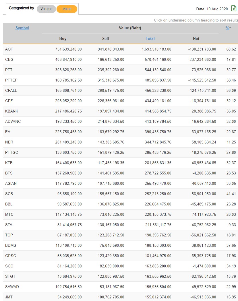 นักลงทุนต่างชาติ NVDR ซื้อ-ขาย มูลค่าสูงสุด 25 อันดับ 10/08/63