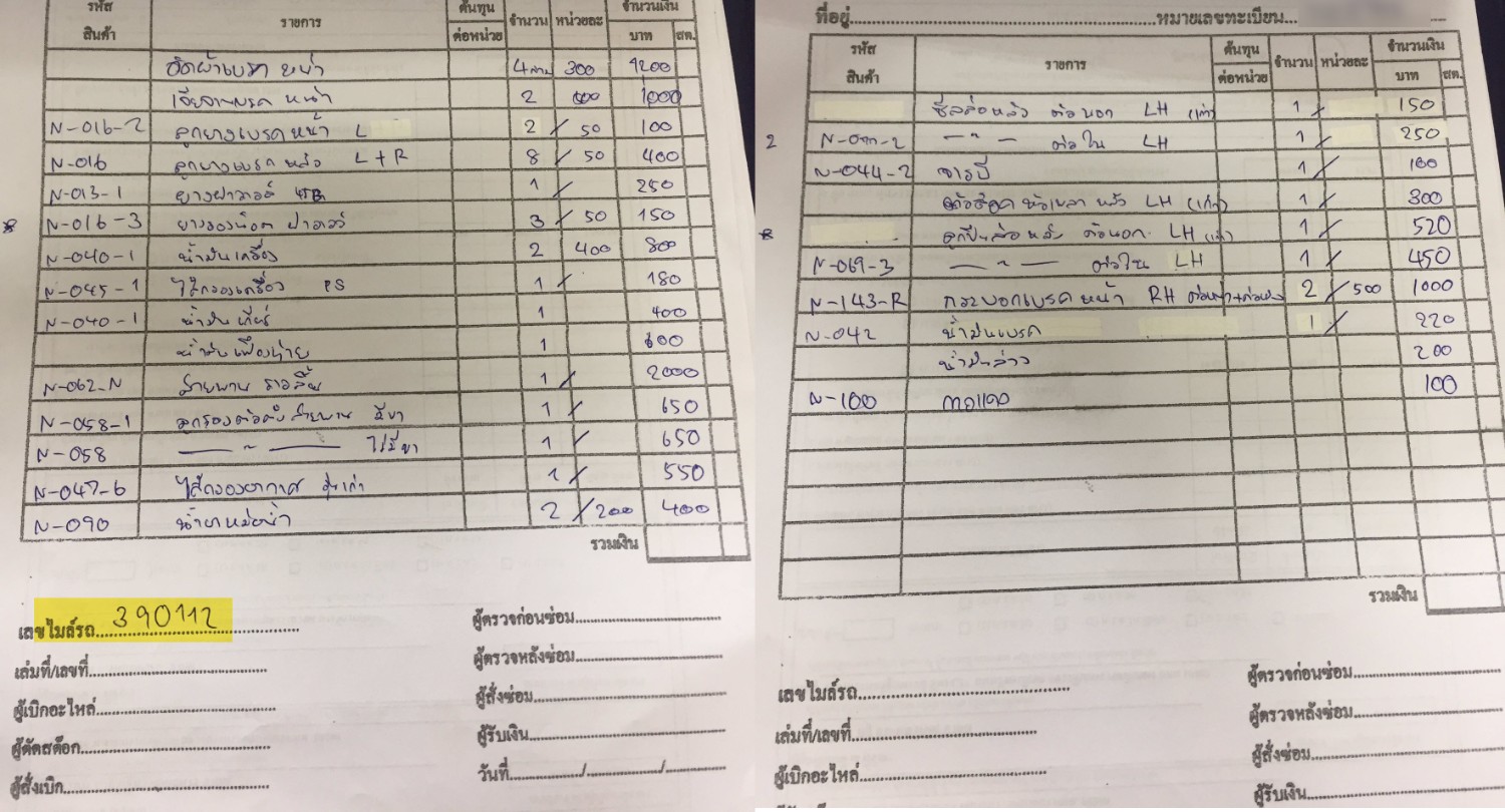 ค่า ซ่อมรถ และ เปลี่ยน ถ่ายนำ้มันเครื่อง ตาม บิลนี้ ราคาเหมาะสม ไหมครับ