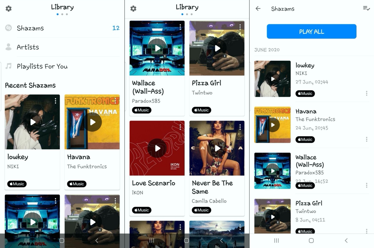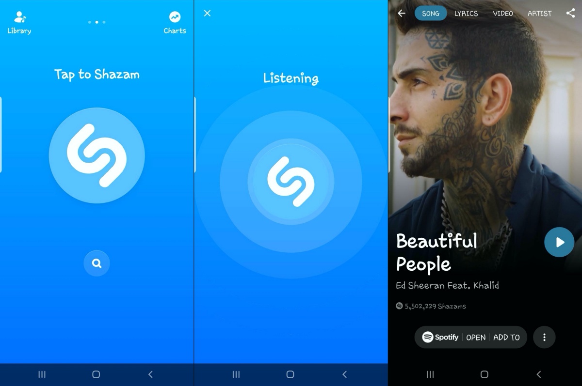 หน้าตาของแอป Shazam จะมีอยู่ 3 หน้า