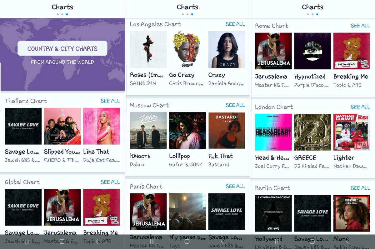 หากปัดหน้าจอมาด้านขวา จะแสดงชาร์จเพลงมีทั้ง ไทย และชาร์จเพลงต่างประเทศ