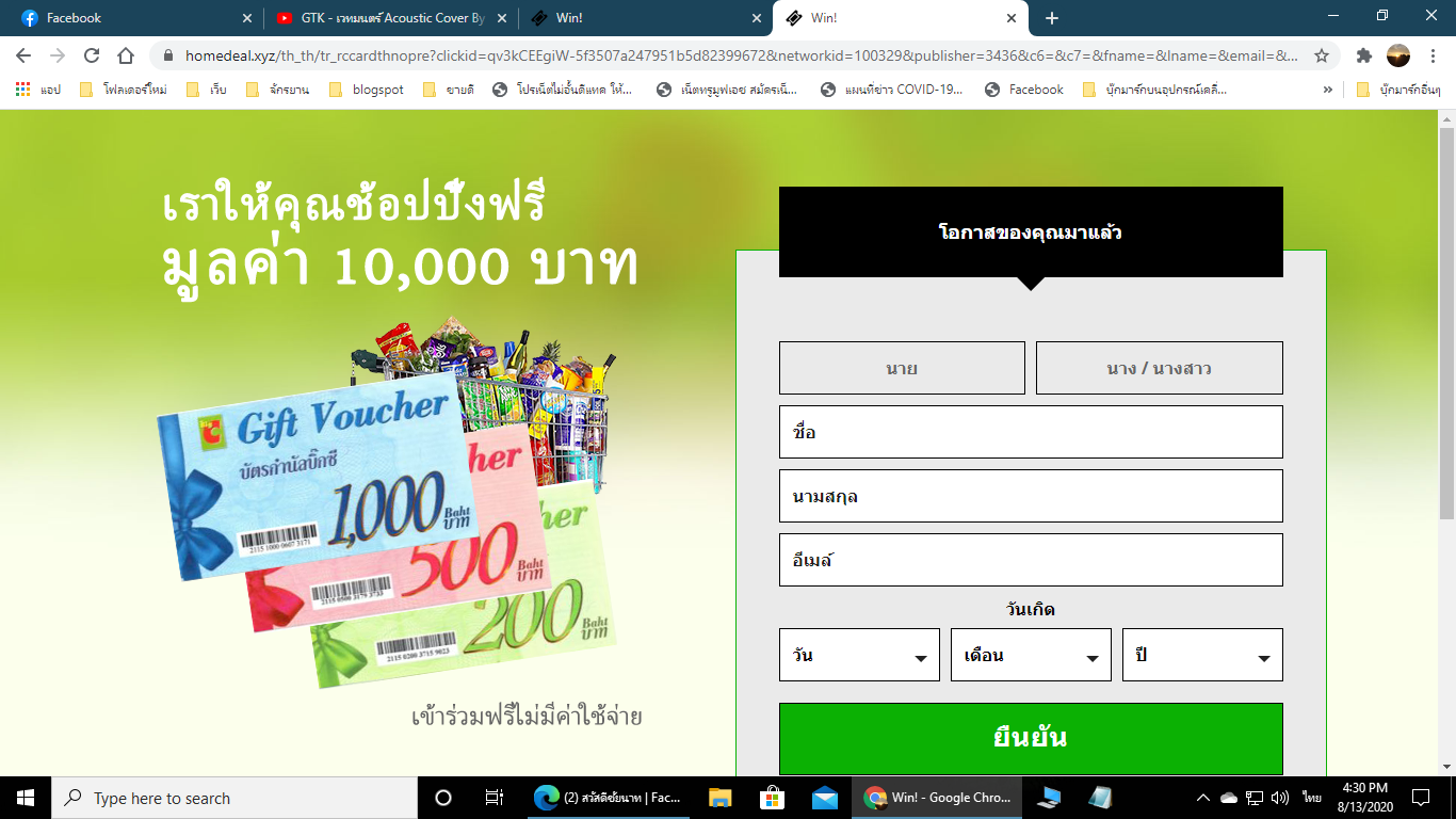 คือใช้คอมอยู่ก็มีแจ้งเตือนจาก big c ให้เลือกกล่องมีแปดกล่องถ้าถูกจะได้บัตรกำนัล 10000 บาท พอดีเลือกได้มันก็ขึ้นมาตามภาพ หลอกใช่ไหมแบบนี้