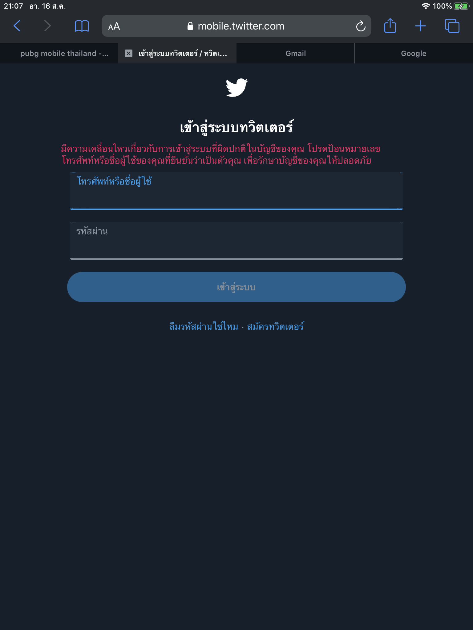 เราเข้าทวิตเตอร์ไม่ได้ จำได้แค่ username เท่านั้นอ่ะ เราแก้ยังไงก็ไม่ได้ เราอยากเล่นเกมส์เราเอาทวิตล็อกอินเกมส์ ให้มีวิธีช่วยหน่อยค่ะ