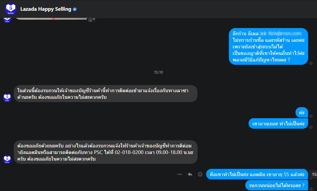 เจ้าหน้าที่เลยขออีเมล และพักสาย ไปเช็คสถานะของร้านค้าให้