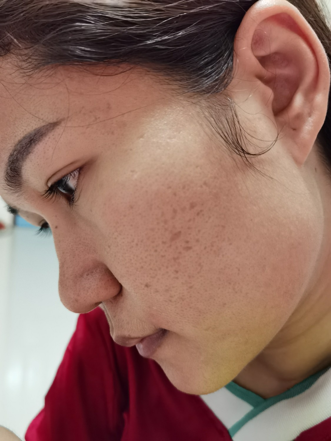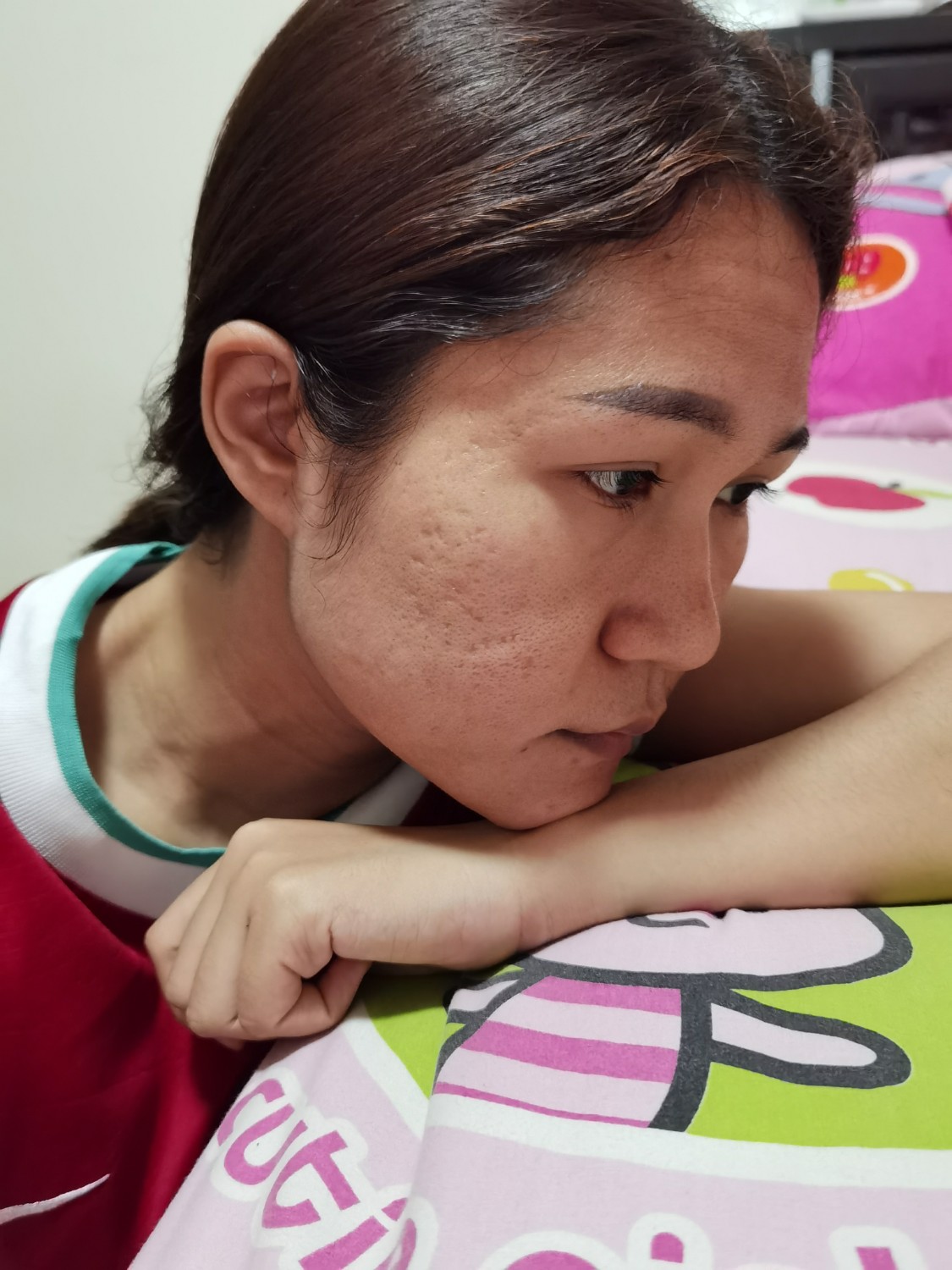 มีสิว รูขุมขนกว้าง มีรอยดำรอยแดง หน้าเป็นหลุม หน้าผากมีรอยย่น เครียด