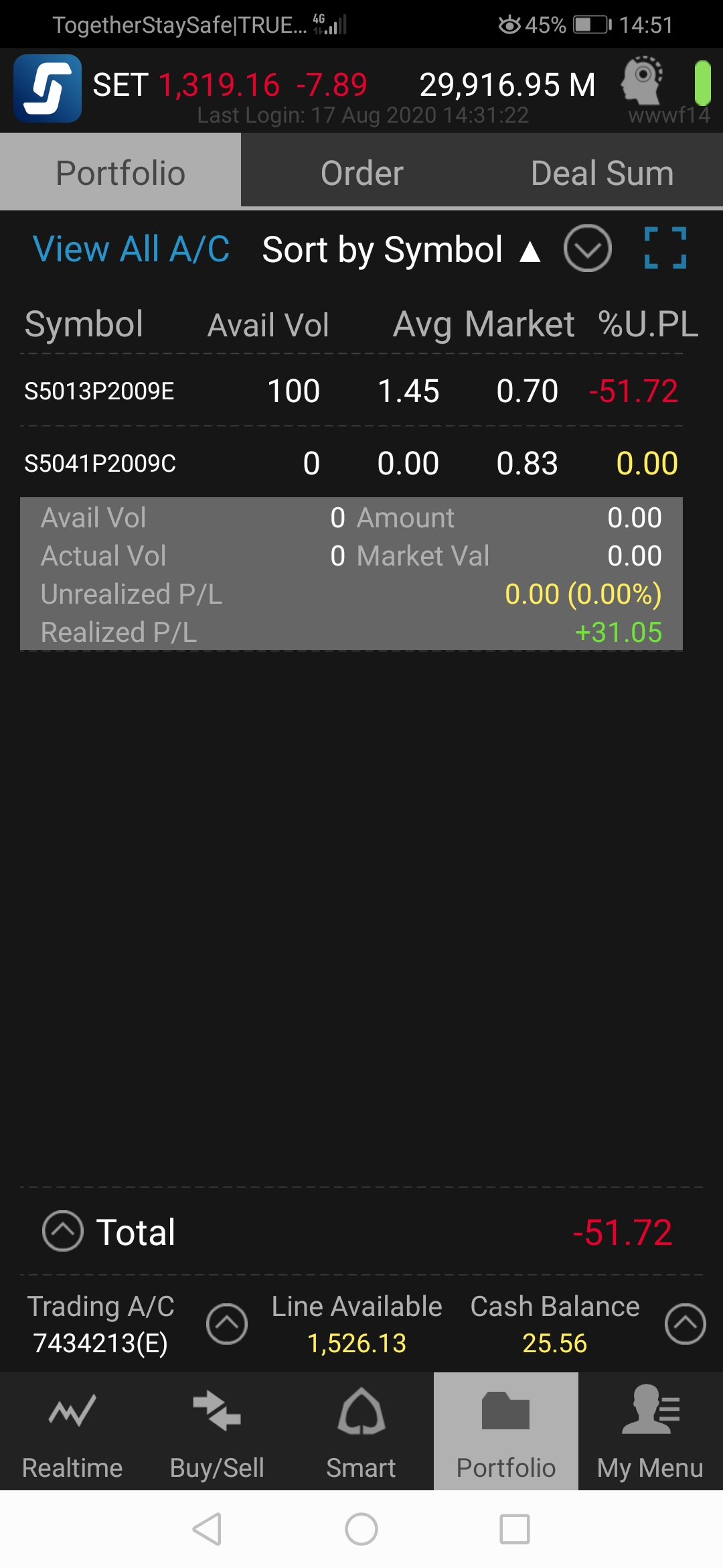 14/8/63 +27.10 ซื้อ s50 put ท้ายตลาด