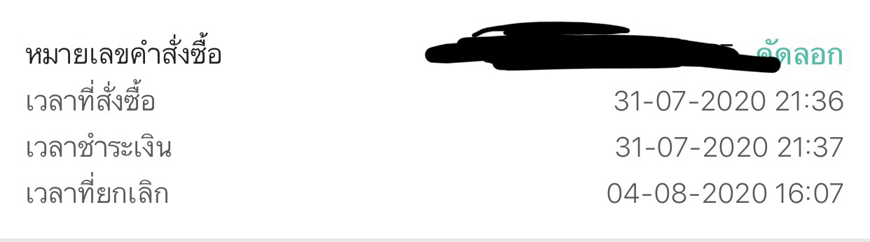 ร้านอ้างว่า สินค้าลูกค้ายกเลิกทำให้สินค้าเด้งเข้าสต๊อคสักอย่าง กว่าร้านจะกดยกเลิกให้ใช้เวลา4วัน อันนี้เราเองมีส่วนผิดตรงที่ไม่ถามตั้งแต่