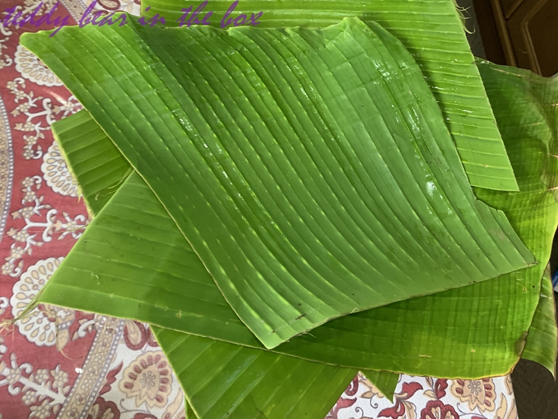 เตรียมล้างใบตอง ผึ่งและเช็ดให้แห้ง ก่อนใช้เอาไปตากแดดเพื่อให้ใบตองนิ่มลงกันไม่ให้แตกตอนห่อ