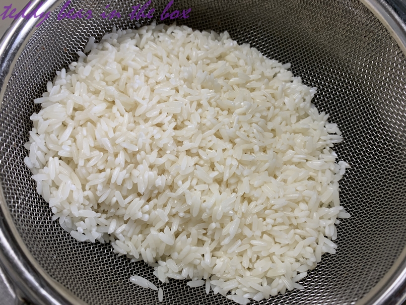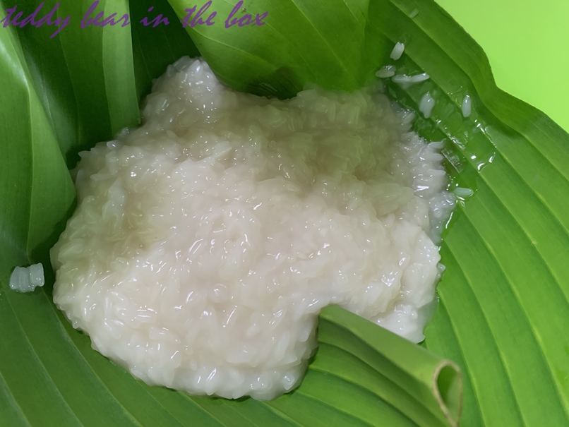 1. ล้างและแช่ข้าวเหนียวค้างคืนไว้ สะเด็ดน้ำให้แห้ง