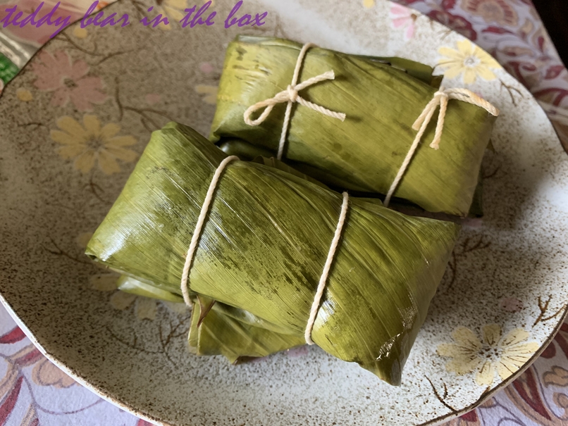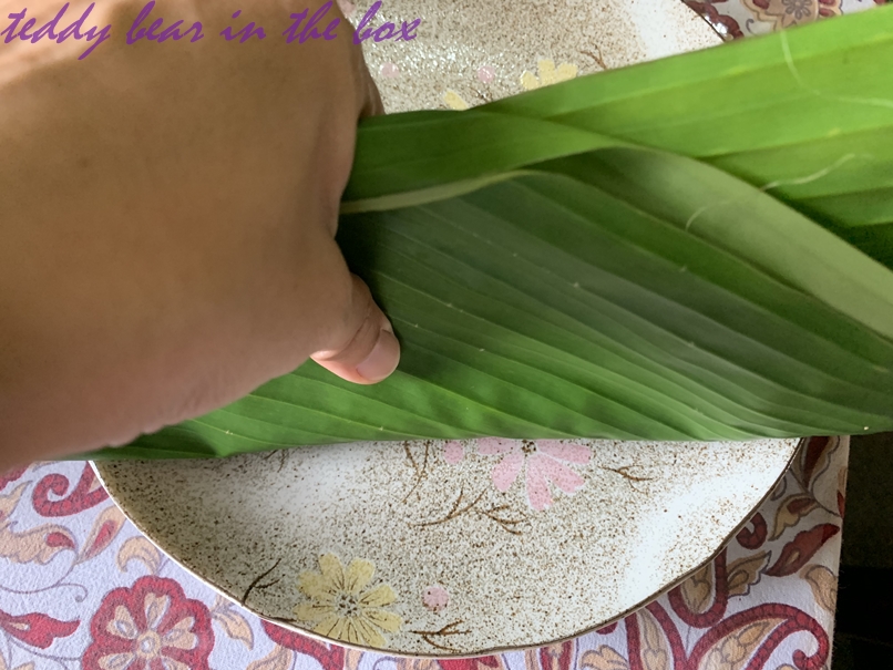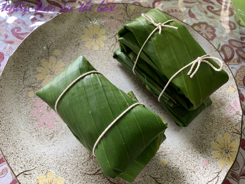 พอดีมีรุ่นน้องหอบใบตองมาให้เยอะมาก ที่จริงยังนึกไม่ออกว่าจะทำอะไรแต่กลัวใบตองเสียทิ้ง คิดว่าจะทำข้าวต้มมัด