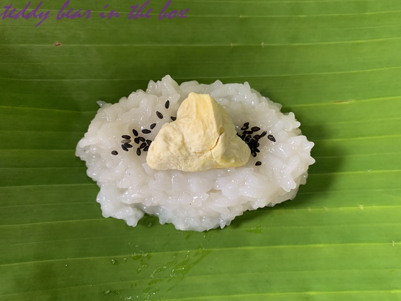 กินข้าวเหนียวพร้อมกับเนื้อทุเรียน รสชาติเหมือนกินข้าวเหนียวน้ำกะทิทุเรียนพอได้ค่ะ