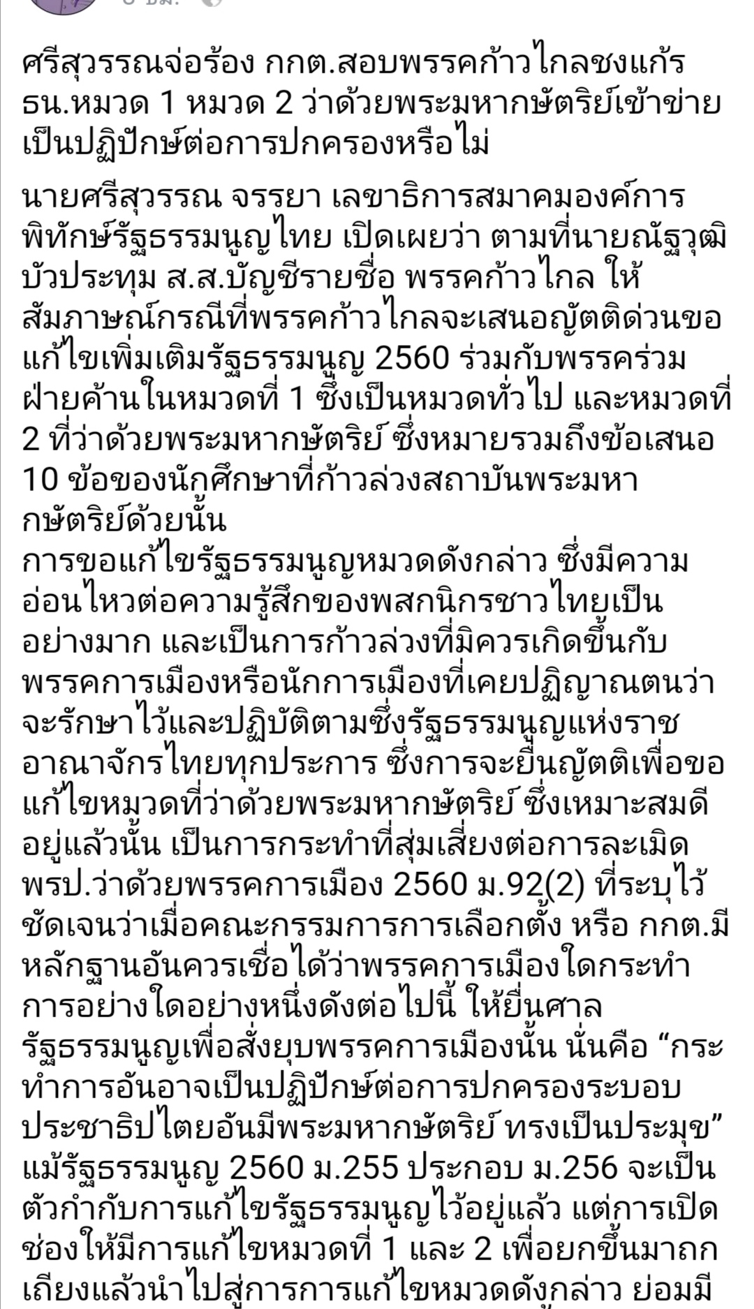 คุณศรี ยื่นยุบก้าวไกลข้อหาพยายามแก้ไข รธน ลักษณะเปลี่ยนแปลงการปกครอง