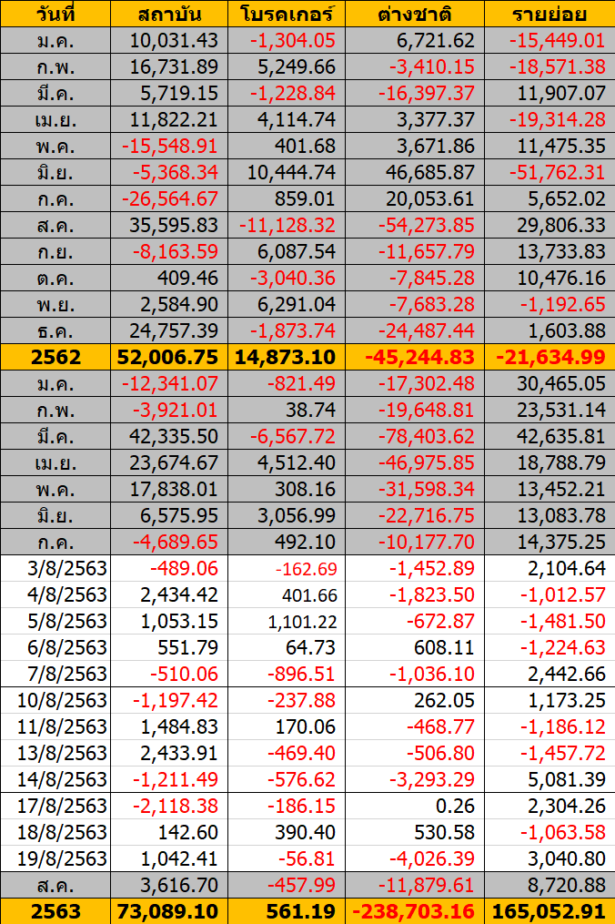 Sinthorn Summary 19/8/2563 : ต่างชาติขายสุทธิ -4,026.39 ลบ.