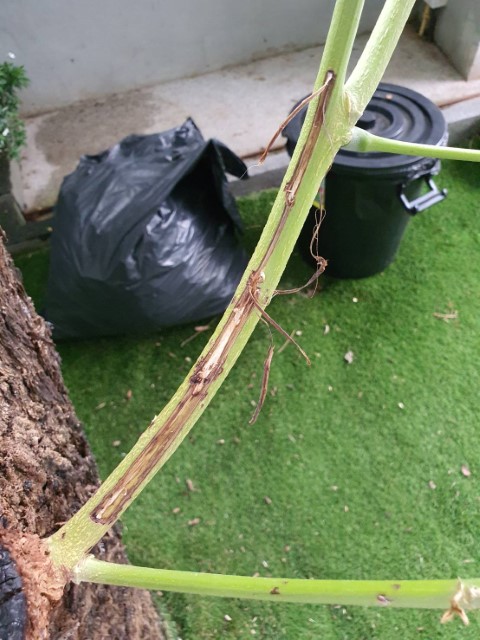 ขอรบกวนสอบถามปัญหาต้นทองกวาว เหมือนมีแมลงฉีกกิ่งลำต้น จะแก้ไขได้ยังไงครับ