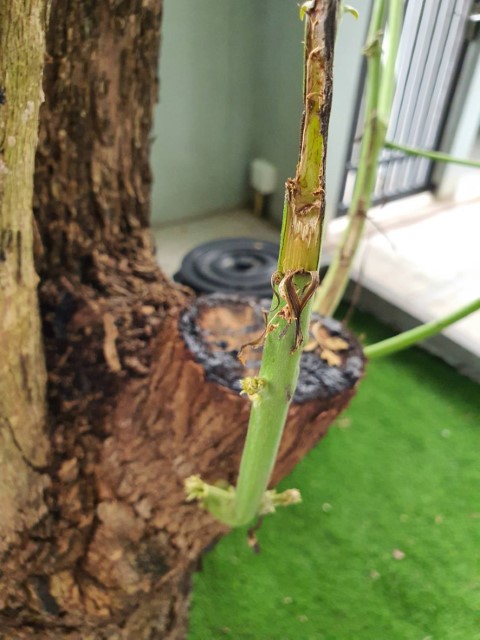 1. กิ่งใหม่ที่ออกมา จะมีแมลงมาฉีกกิ่ง ทำให้กิ่งตาย
