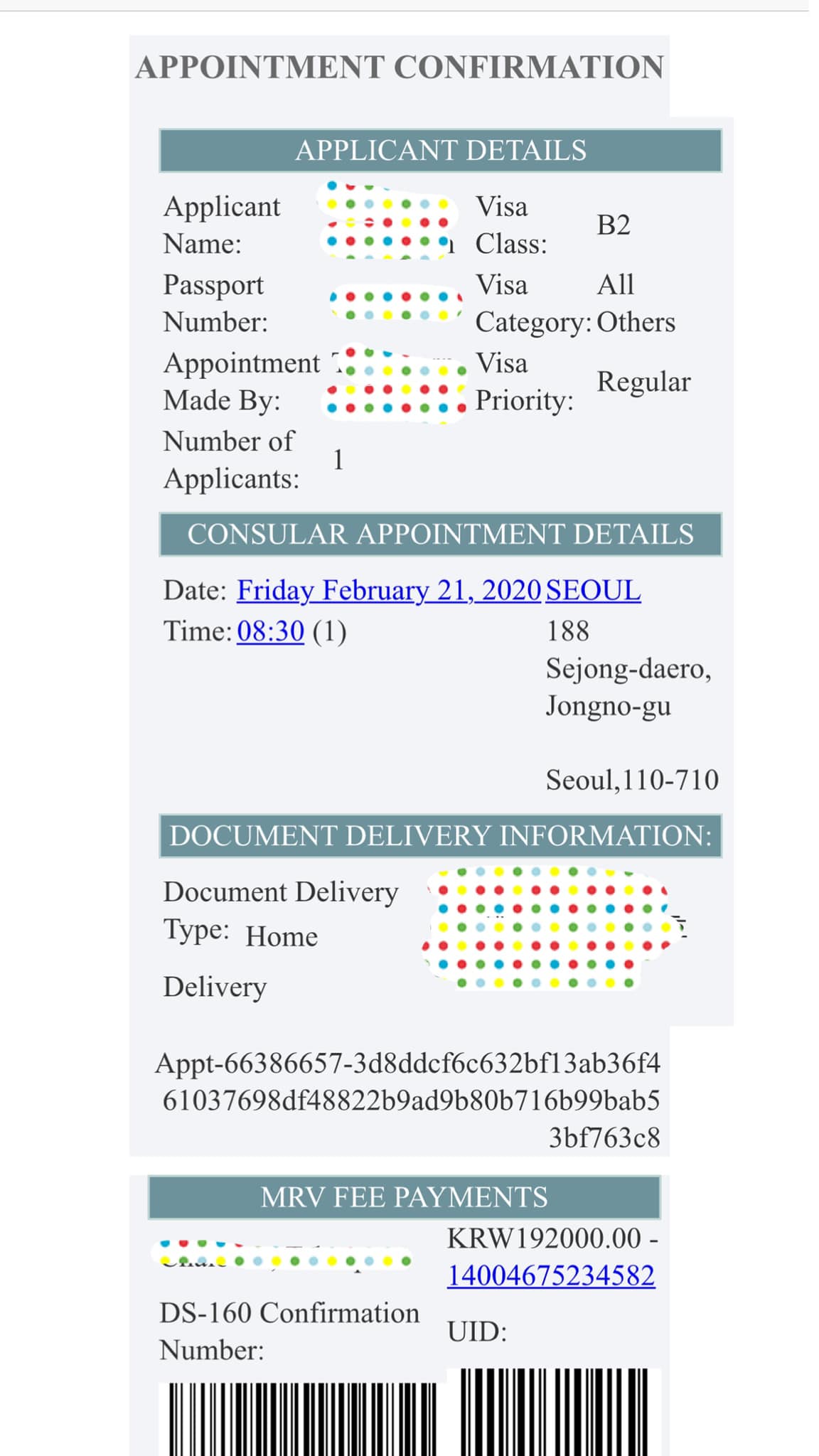 .....อ้อ ลืมบอกไปว่าคนไทยที่สามารถขอวีซ่าเมกาในเกาหลีได้ต้องเป็นผู้ที่มีวีซ่าระยะยาวของเกาหลีอยู่แล้ว เช่น วีซ่านักเรียน, วีซ่าแต่งงาน หรือวีซ่าทำงาน เป็นต้น (วีซ่าท่องเที่ยวไม่ได้นะคะ) ตอนที่เราสมัครขอวีซ่า ค่าธรรมเนียมอยู่ที่192,000₩ สามารถใช้แอพโอนเงินของธนาคารเกาหลีจ่ายได้เลยค่ะ หลังจากกรอกแบบฟอร์มและทำการชำระเงินเรียบร้อยแล้วจะได้อีเมลตอบกลับจากสถานทูตมาแบบนี้