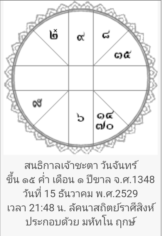 ลัคนาสถิตย์ราศีพฤษภ ตนุเศษอังคาร ดาวศุกร์ดาวประจำตัวสถิตย์สหัชชะภพ มีดาวราหูเจ้าเรือนกัมมะร่วมอยู่กับดาวเกตุ เล็งกับดาวมฤตยูเจ้าเรือนกัมมะในภพศุภะ ดาวอังคารเป็นดาวเจ้าเรือนปัตนิสถิตอริภพ มีดาวพฤหัสบดี