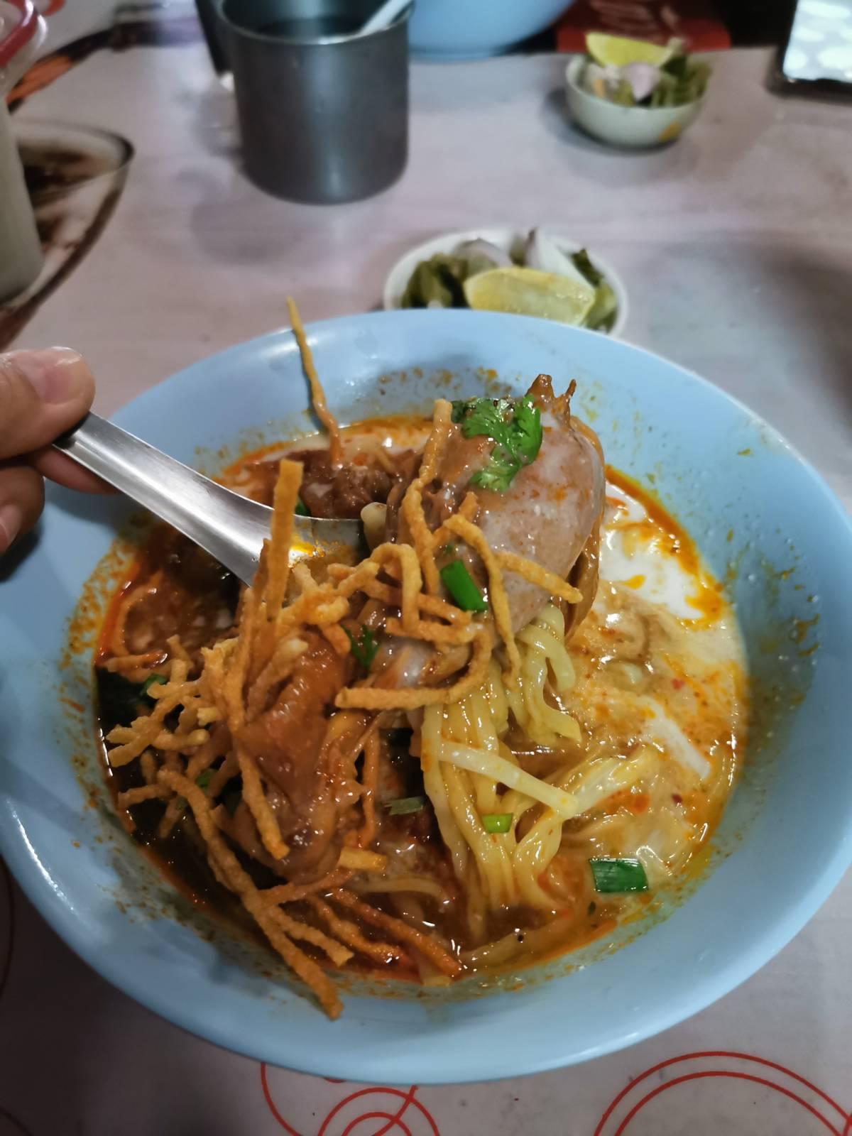 บอกเลยอร่อยมาก น้ำข้นนัวมากคะ มีทั้งเนื้อ และไก่ ขอบอกเนื้อเปื่อยมาก ราคาไม่แพงอีกต่างหาก ถ้วยละ 40 บาท อิ่มแบบจุกๆกันไปเลย