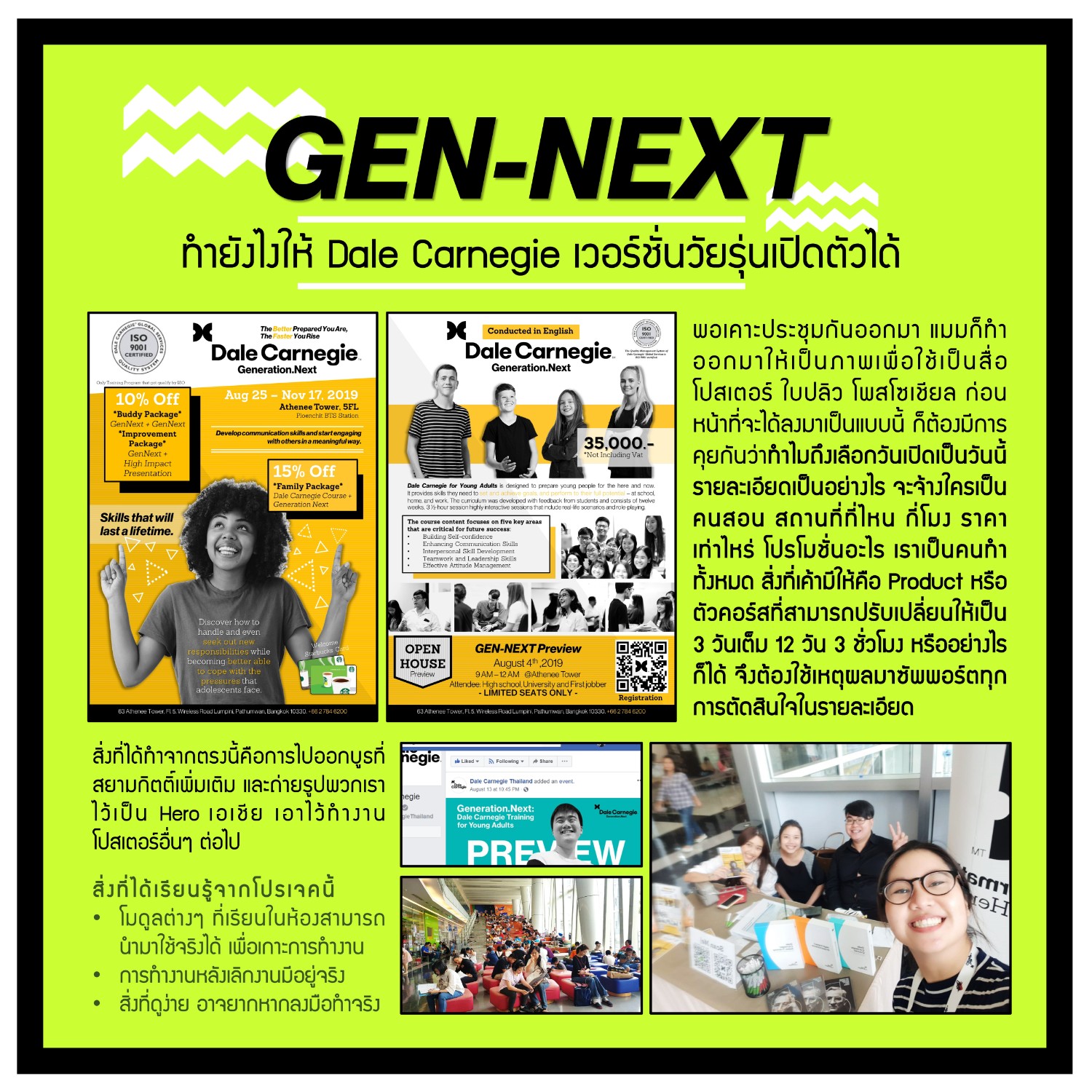 ส่วน project ที่ 2 คือการทำ marketing เจาะกลุ่มตลาดวัยรุ่น เพื่อเปิดคอร์ส Dale Carnegie แบบวัยรุ่นขึ้น ในจุดนี้พวกเราก็นั่งวางแผนกัน บางจุดที่รั่วไหลก็มีพี่ๆคอยช่วยเติมแนะให้ ซึ่งตรงนี้ได้เรียนรู้อะไรเยอะมาก เพราะบางสิ่งที่เรียนมาจากในห้องเรียนก็สามารถที่เอามาใช้ได้จริง แล้วก็ค่อนข้างเปิดกว้างทางความคิด ให้อิสระในการตัดสินใจแต่ต้องมีเหตุผลและ KPI มารองรับงานที่เราทำก็จะเป็นในส่วนของสื่อ ทำโฆษณา ทำรีวิว แล้วก็ออกบูธ