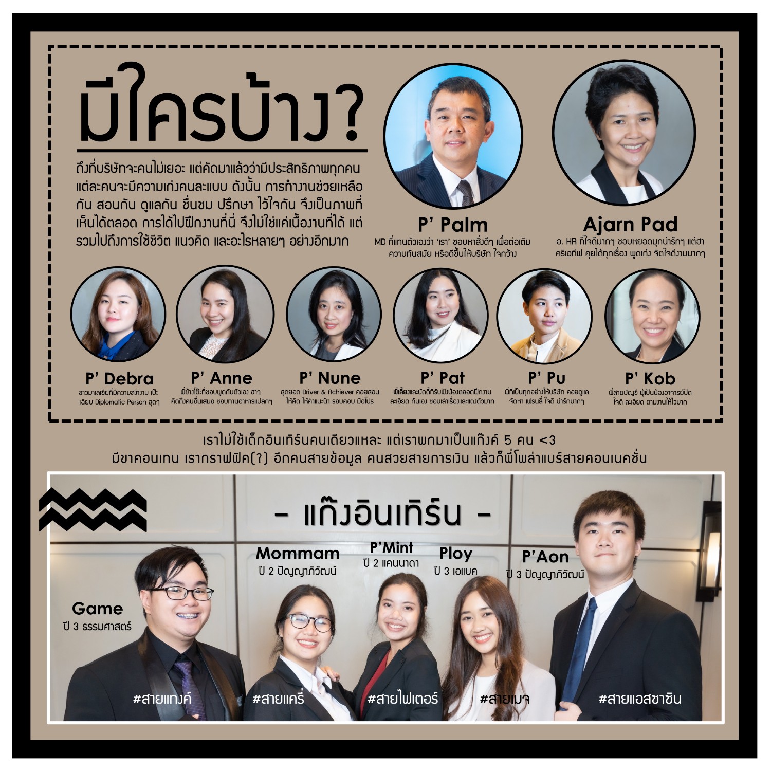 ท้ายนี้ แมมอยากบอกว่า การฝึกงานที่นี่ทำให้มันได้รู้โลกกว้างขึ้นเยอะ ได้รู้ว่าการทำงานออฟฟิศเป็นแบบไหน ได้รู้ว่าถ้าเราอยู่ในองค์กรที่ดีเราก็จะรู้สึกดี และอยากทำงานต่อไปในแต่ละวัน รวมไปถึงการเรียนรู้ที่จะเป็นหัวหน้าที่ดี สร้างวัฒนธรรมที่ใช่ให้กับลูกน้อง เพื่อที่ว่าคนในทีมของเรา จะมีความขยันและทุ่มเทกับองค์กรเป็นอย่างไร