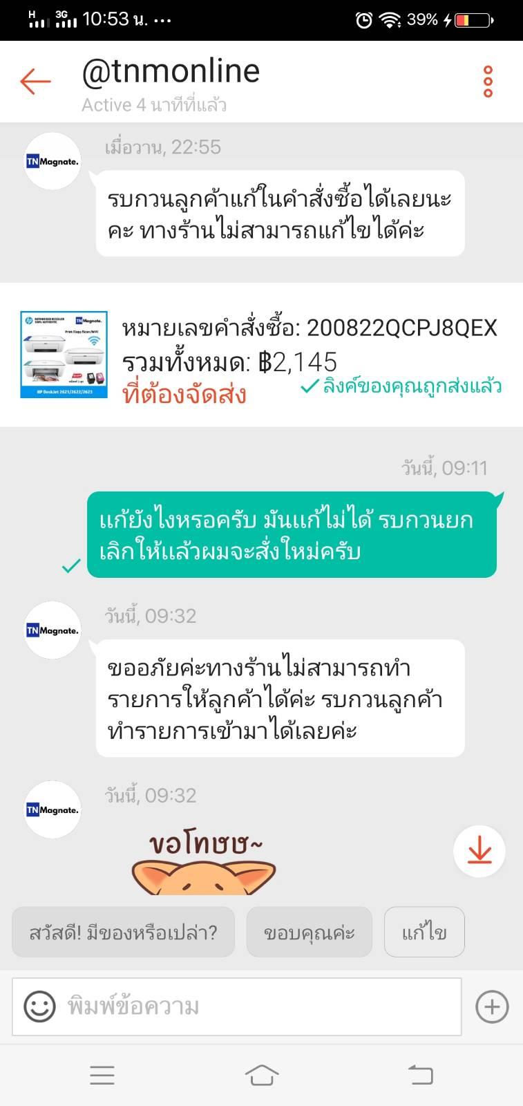 ร้านค้าไม่ยอมยกเลิกสินค้าให้ใน Shopee