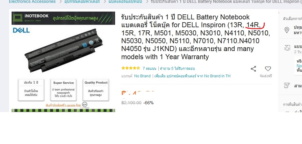 โนท บุค เก่า del อินสปาย 1440 ใช้ เเบตเตอรี่ในภาพ ได้ไหมครับ / 14r ?/
