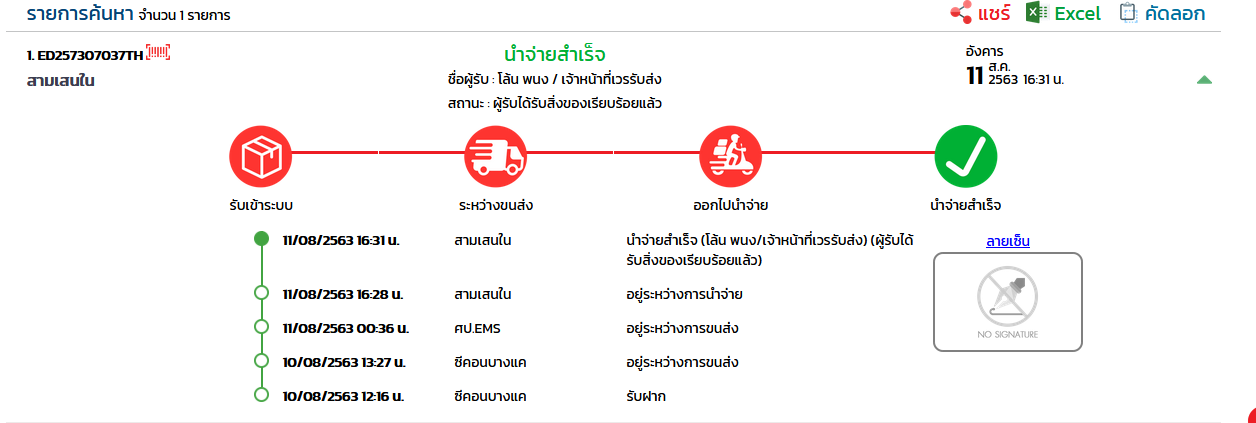 ไปรษณีย์ไทย ems ขึ้นสถานะนี้หมายความว่าไง