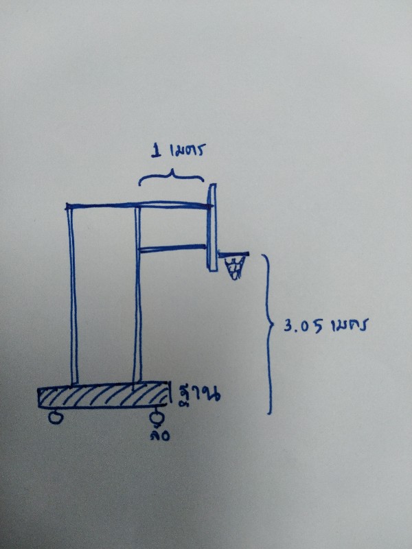 โจทย์ฟิสิกส์ : ผมจะทำแป้นบาส+เสาแบบนี้ต้องถ่วงฐานกี่กิโลครับ