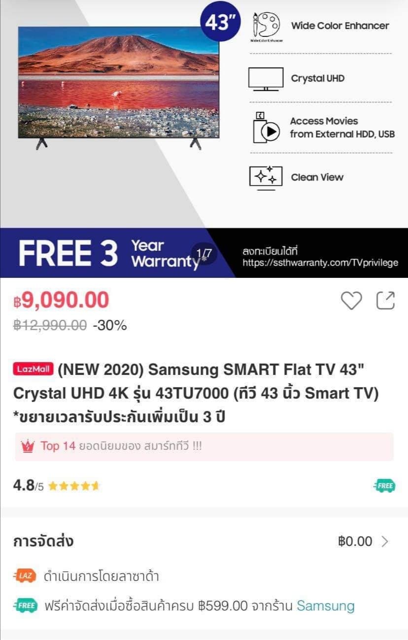 อ่อ! แล้วอยากทราบว่าการสั่งในลาซาด้าตามรูปนี้นี่มันเป็นช็อปของคนขายทั่วไปหรือเป็นช็อปของ Samsung เอง พอดีไม่ค่อยมีความรู้เรื่องการสั่งของออนไลน์