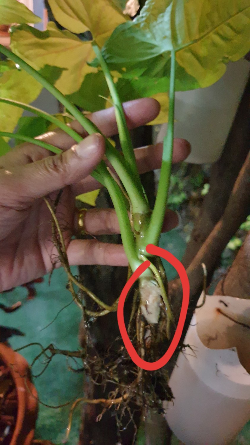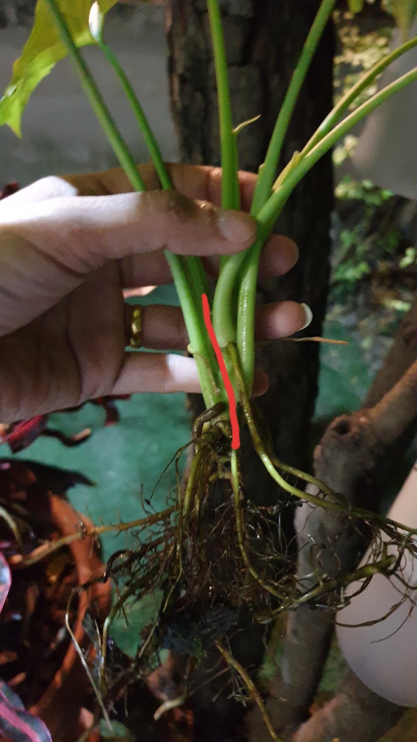 เราแบ่งหน่ออออกมา ใช้มือแงะตรงก้านติดรากแล้วใส่น้ำ นี้ถูกไม๊คะ? ขอบคุณค่ะ
