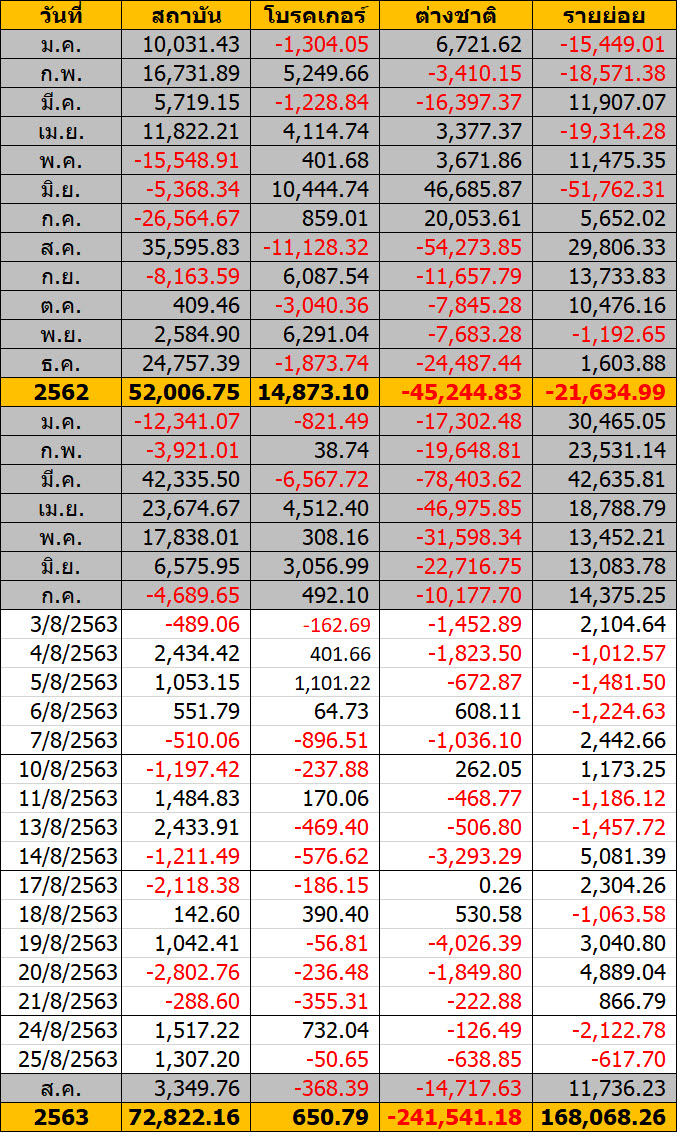 Sinthorn Summary 25/8/2563 : ต่างชาติขายสุทธิ -638.85 ลบ.