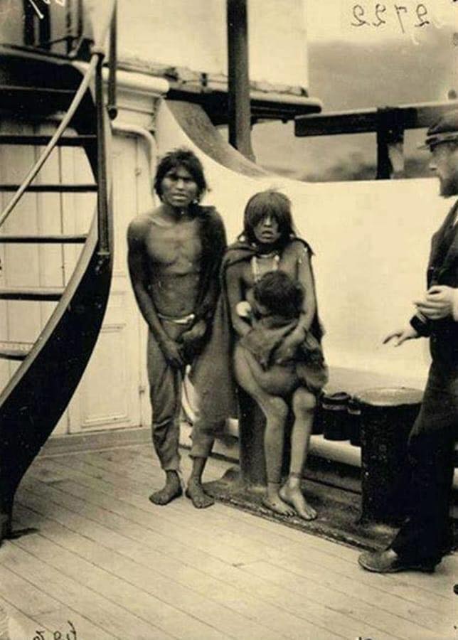 ภาพครอบครัวชาวเซลค์นัมในอเมริกาใต้ถูกจับขึ้นเรือไปยุโรป เพื่อเอาไปใส่สวนสัตว์มนุษย์ให้ชาวยุโรปดูเล่น ถ่ายปี 1899