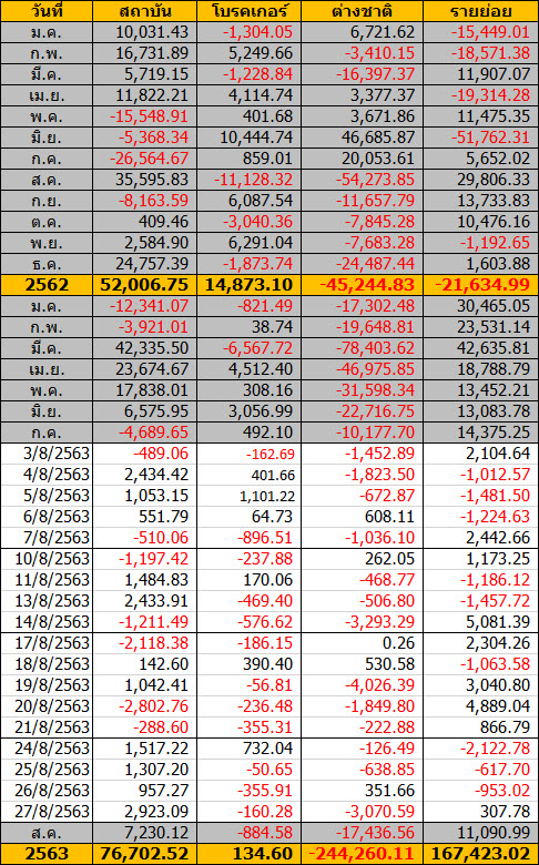 Sinthorn Summary 27/8/2563 : ต่างชาติขายสุทธิ -3,070.59 ลบ.