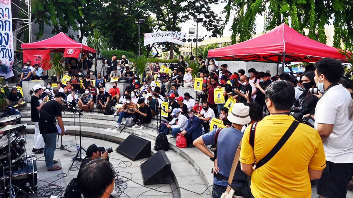 วันที่ 27 ส.ค. ที่บริเวณอนุสรณ์สถาน 14 ตุลา สี่แยกคอกวัว กลุ่มดาวดิน สามัญชน นำโดย ‘