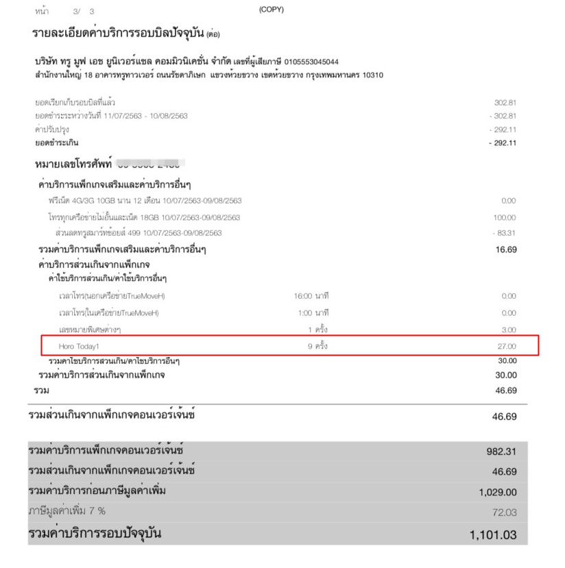 เคยติดต่อยกเลิกไปแล้ว เมื่อเดือนก่อน (เสียค่าบริการไปเป็นร้อย Horo today 1)